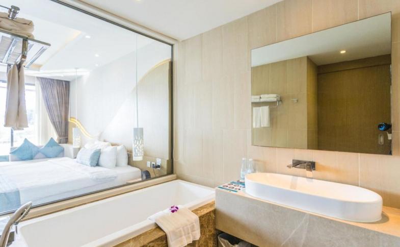 některé mají přístup k bazénu. Krásná pláž Tri Trang je vzdálena