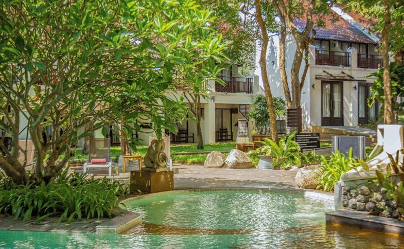 Hotel disponuje několika restauračními zařízeními, dvěma bazény v tropické zahradě.