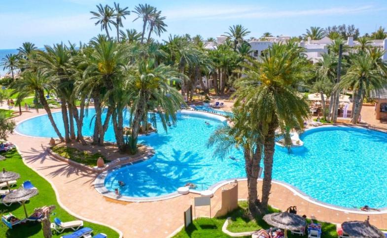 Belgický majitel a starší klientela,klid ...10 km od Zarzis a 40 km od rušné Djerby... krásná palmová zahrada.