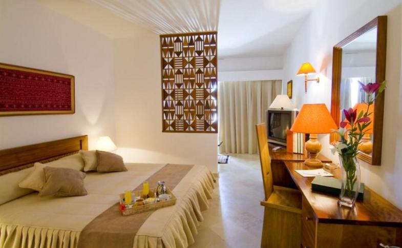 V pokojích je klimatizace, ústřední topení a koupelna. Většina pokojů má balkón s krásným výhledem. Mnoho pokojů má výhled na moře, který vytváří příjemnou atmosféru. Pokoje mají dvoulůžkovou postel nebo kingsize manželskou postel. Je možné rezervovat oddělené ložnice. Je možné požádat o přistýlku. Také je zde sejf, minibar a pracovní stůl. Lednička a varná konvice/kávovar patří také k základnímu vybavení. Na pokoji je připojení k internetu, telefon, televize, rádio, CD přehrávač a WiFi (zdarma). Pro hosty je na pokoji připravena domácí obuv. Je možné rezervovat bezbariérové pokoje. V koupelnách je sprchový kout a vana. K dispozici mají hosté také vysoušeč vlasů, kosmetické zrcátko a župan. V komplexu bungalovů jsou nekuřácké pokoje.