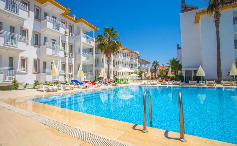 Apartmánový hotel má jeden venkovní a jeden dětský bazén. U bazénu je tobogán, na kterém se zabaví děti i dospělí. Hosté mohou odpočívat na slunné terase, kde jsou lehátka a slunečníky. V baru u bazénu jsou k dostání různé osvěžující nápoje. V objektu je možné se věnovat mnoha sportovním aktivitám. Je zde na výběr například jízda na kole/horském kole, plážový volejbal, volejbal, rybaření a jízda na koni. Milovníci vodních sportů mají na výběr mnoho aktivit, je zde například vodní lyžování, windsurfing, jet ski, jízda na šlapadlech, jízda na banánovém člunu, jízda na kánoi, plachtění, jízda na katamaránu, potápění a aqua fitness. Hosté mohou sportovat i uvnitř hotelu, je tady fitness studio, stolní tenis, kulečník, šipky a aerobik. V apartmánovém hotelu je wellness zóna, ve které je spa, sauna, hammam, kosmetický salon a masáže. V nabídce je animační program, živá hudba a miniklub. Copyright GIATA 2004 - 2026. Multilingual, powered by www.giata.com for client no. 123391