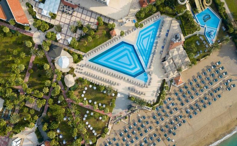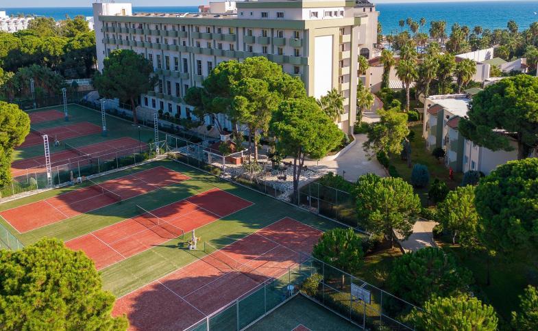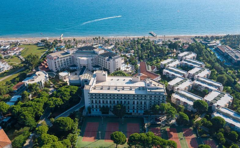 Rozloha 116,000 m2, hlavní budova, vedlejší budova propojena s hlavní, clubová část složena z 10 bloků, celkem 7 výtahů dohromady v hlavní a vedlejší budově (v clubové části výtahy nejsou), vstupní hala s recepcí, hlavní restaurace, snack bar, patisserie, A la Carte snack restaurace, 3 A la Carte restaurace (1x za pobyt s rezervací zdarma - otevřena od 01.05.-30.09.), Lobby bar, kavárna, bar u bazénu, bar na pláži, Time Out Bar, hlavní bazén, dětský bazén, bazén se skluzavkami pro děti i dospělé (skluzavky v provozu od 01.05. do 30.09.), lehátka, slunečníky a osušky zdarma, 4 konferenční místnosti (ze 3 lze vytvořit jednu velkou s délkou 50,7m), pokojová služba (za poplatek), služby kadeřníka (za poplatek), nákupní arkáda, služby prádelny (za poplatek), služby lékaře nebo zdravotní sestry (za poplatek), půjčovna aut (za poplatek), půjčovna kočárků (za poplatek).Pokoje