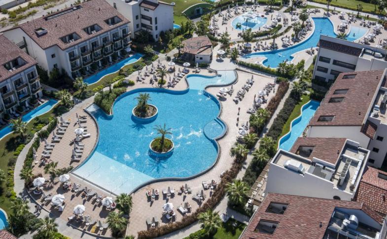 CK BLUE Sensatori Akra Fethiye je 5hvězdičkový hotel pro náročné hosty. Odpočinou si zde rodiny s dětmi i ti, kteří cestují v páru nebo s přáteli. Plážoví nadšenci budou mít k dispozici pláže s plážovým servisem v ceně a možnost provozovat vodní sporty. V areálu se konají tematicky a věkově rozmanité animace, které vede zkušený tým animátorů. Milovníci vodních radovánek zde najdou také 4 skluzavky a nejmladší hosté bazén typu splash. |