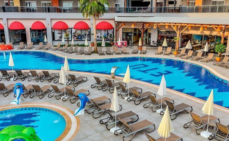 Písečná a oblázková pláž v těsné blízkosti hotelu, přibližně 1 km. Hotel nabízí kyvadlovou dopravu na pláž vyhrazeným autobusem (informace o časech na recepci). Slunečníky, lehátka, občerstvení a nápoje za poplatek. Nejznámější Kleopatřina pláž je vzdálena přibližně 5 km od hotelu. |