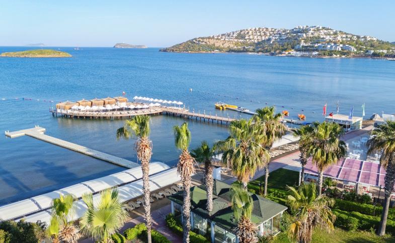 Příjemný hotel u promenády, která vede až do centra města Turgutreis. Hotel disponuje privátní pláží a několika bazény.Zázemí hotela je ideální pro rodinnou dovolenou.