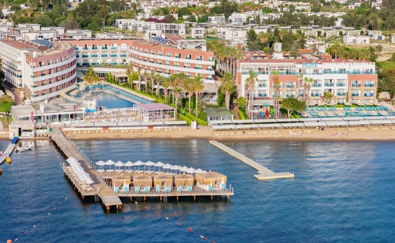 Příjemný hotel u promenády, která vede až do centra města Turgutreis. Hotel disponuje privátní pláží a několika bazény.Zázemí hotela je ideální pro rodinnou dovolenou.