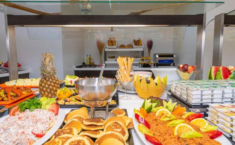 Lze objednat polopenzi. Podávají se snídaně, obědy a večeře. Na přání je možné připravit dietní jídla a dětská menu Hotel nabízí také speciální nabídky stravování.