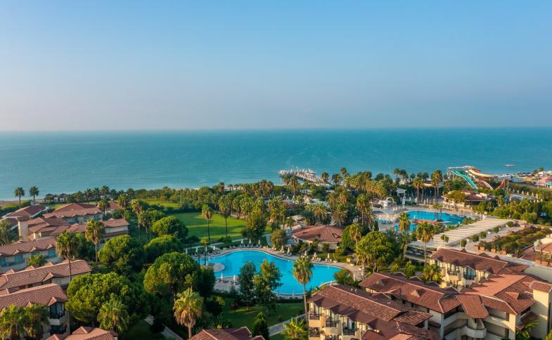 Luxusní 5* hotel s Ultra All Inclusive se nachází v oblíbené oblasti Belek, které je vyhlášené svými dlouhými plážemi, luxusními hotely a golfovými hřišti. Jedná se o rozsáhlý komplex, který se skládá z hlavní budovy, annex části a bungalovů (názvosloví dané hotelem, jedná se o vyšší budovy v zahradě). Je zde široká nabídka stravovacích možností, hotel nabízí alkoholické nápoje místní výroby i importované 24 hodin denně. Pro děti je zde připraven aquapark a dětský klub s dětským animačním programem přes celý den. Pro dospělé je zde také aquapark, wellness centrum a široká nabídka sportovního možností. Písečná pláž se nachází přímo u hotelu, na které jsou lehátka a slunečníky zdarma.Vzdálenost