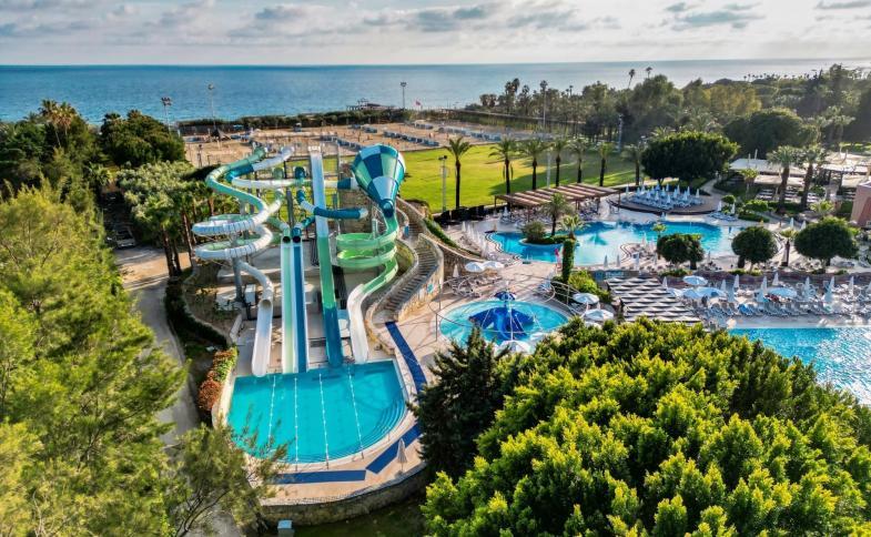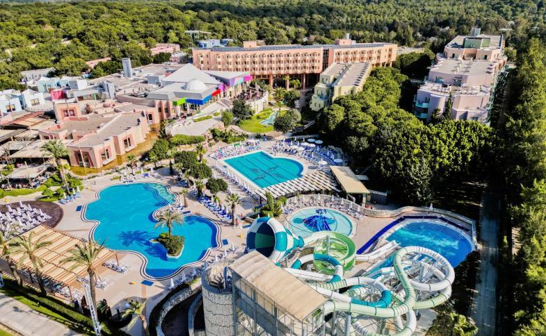 671 pokojů umístěných v hlavní budově (5patrová, 5 výtahů) a v budovách v zahradě (2patrové, bez výtahu), vstupní hala s recepcí, 2 hlavní restaurace, 2 á la carte restaurace (čísnká a Steak House, za poplatek, rezervace nutná) 2 tématické restaurace (turecká, rakouská, 1x za pobyt obě zdarma, rezervace nutná), snack bary, bary, konferenční místnosti, kadeřník, obchody, prádelna, SPA centrum, lékař, lékárna, knihovna, 4 bazény (2 vyhřívaný v dubnu a druhé polovině října), vnitřní bazén (vyhřívaný v dubnu a druhé polovině října), 3 dětské bazény (1 vyhřívaný v dubnu a druhé polovině října), vnitřní dětský bazén (vyhřívaný v dubnu a druhé polovině října), skluzavky, terasa na slunění (lehátky, slunečníky a osušky zdarma).