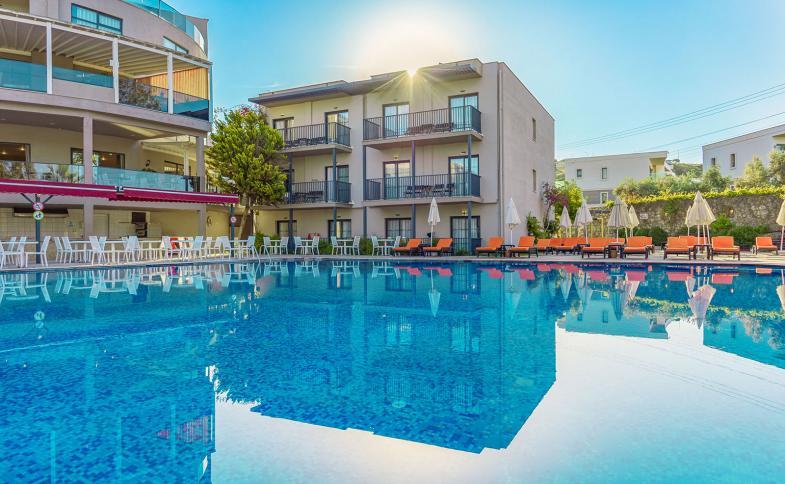 Das Resort liegt in Gümbet und wird nur durch die Uferpromenade vom Strand getrennt. Einkaufs- und Unterhaltungsmöglichkeiten erreichen Sie nach ca. 800 m, das Zentrum von Bodrum nach ca. 1 km. Der Flughafen von Bodrum liegt in ca. 38 km Entfernung.