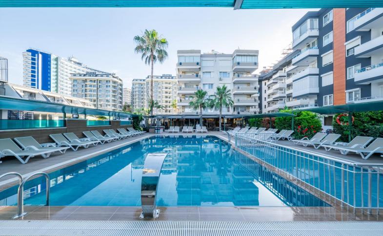 Centrum města Alanya je vzdáleno 4 km, nákupní možnosti v okolí hotelu, mezinárodní letiště Antalya 138 km.Vybavení