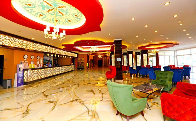 301 pokojů, vstupní hala s recepcí, 3 výtahy, restaurace, několik barů, 2 venkovní bazény (jeden z nich se skluzavkami), dětské brouzdaliště, TV místnost, menší obchodní arkáda, kadeřnictví. Lehátka, slunečníky a osušky zdarma.