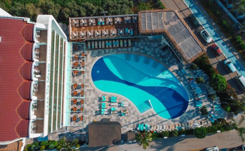 Hotel s originální architekturou se nachází ve známém turistickém letovisku Marmaris, asi 5 km od zábavního centra s mnoha bary, restauracemi, obchody a kluby. Na letiště Dalaman je to přibližně 90 km. Před hotelem se nachází zastávka místní dopravy do centra Marmarisu. |