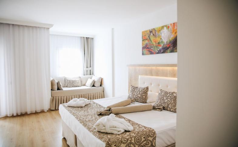 V pokojích je klimatizace, ústřední topení, obývací část a koupelna. Většina pokojů má balkón s krásným výhledem. Pokoje jsou hezky zařízené, je zde pohodlná dvoulůžková postel. Zdarma jsou k dispozici dětské postele a přistýlky. Také je zde sejf a minibar. Zařízení pokoje doplňuje telefon, televize, rádio a WiFi (zdarma). Je možné rezervovat bezbariérové pokoje. Komfortně vybavené koupelny mají sprchový kout. Je zde vysoušeč vlasů. Ke komfortímu vybavení koupelen patří kosmetické potřeby. V objektu jsou pokoje pro rodiny a nekuřácké pokoje.