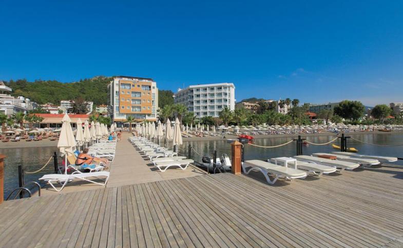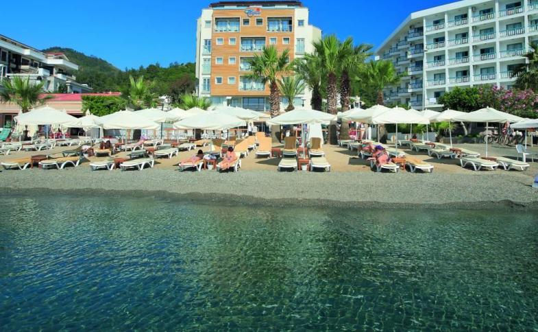 | Příjemný menší hotel s provedením v moderním stylu s dobrou vybaveností a vysokou kvalitou služeb. Jeho výhodou je poloha přímo u soukromé pláže s molem, stejně tak snadná dostupnost zajímavých míst lokality Marmaris. |