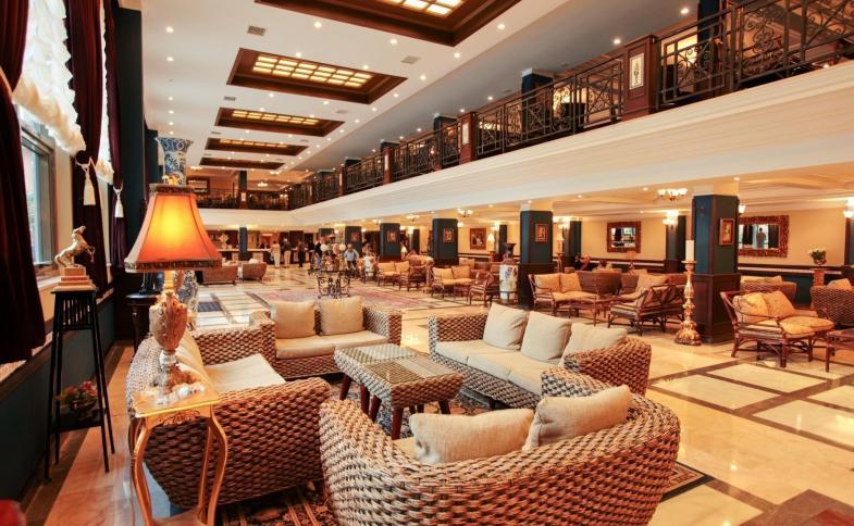 225 pokojů, vstupní hala s recepcí, hlavní restaurace, 3 restaurace à la carte (medusa steak, rybí a italská, 15.6.-1.9.), turecká restaurace, cukrárna, lobby bar, snack bar, bar u bazénu, 3 konferenční místnosti, internetová kavárna, amfiteátr. V areálu 3 venkovní bazény s oddělenou dětskou částí, vnitřní bazén (vyhřívaný mimo hlavní sezónu 1.6.-1.10.), lehátka a slunečníky zdarma, osušky za zálohu.