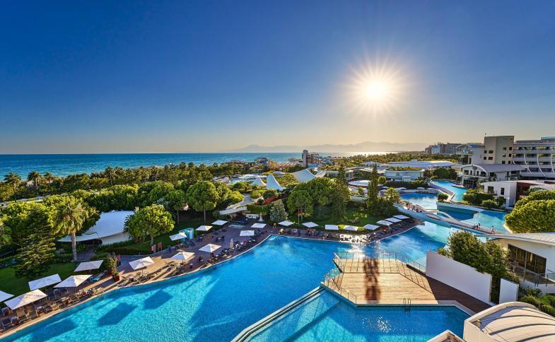 Luxusní hotel v oblíbené oblasti Belek nedaleko letiště v Antalyi. Hotel je oblkopen golfovými hřišti a další zelení. Hotel je vhodný pro náročné rodiny, přičemž hotel uspokojí všechny věkové kategorie. Děti si mohou užít nádhernou pláž přímo u hotelu, dětský klub pro děti ve věku 0-17 let, skluzavky pro děti a bohatý animační program. Dospělé zase uspokojí nádherné wellness, bohaté sportovní vyžití a Ultra All Inclusive, které nabízí importované alkoholické nápoje 24 hodin denně. Zrovna tak je k dispozici stravování dostupné neustále.Vzdálenost
