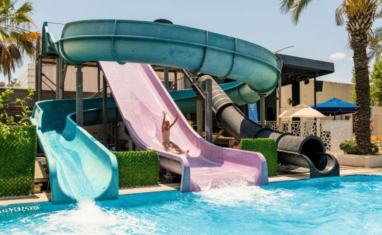 skluzavkami a bohatou animační nabídku. Přes den se zde konají