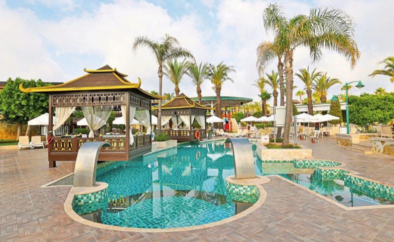 Resort je z roku 2007. Komplex nabízí hostům celkem 372 pokojů. Po příjezdu jsou hosté uvítáni ve vstupní hale s recepcí. Do většiny poschodí lze dojet výtahem. Hosté dostanou po příjezdu na uvítanou drink. V objektu je úschovna zavazadel, hotelový sejf a směnárna. Ve společných prostorách se mohou hosté přes WiFi připojit k internetu. V prázdninovém areálu se nachází restaurace, jídelna, snídaňový salónek, kavárna, bar a plážový bar. Je tady supermarket a obchod se suvenýry a další obchody. V areálu je hezká zahrada a hřiště. Nachází se zde také novinový stánek, TV místnost, dětská herna a knihovna. Hosté mohou zaparkovat v garáži nebo na parkovišti. Dále je možné využít vícejazyčný personál, 24 hodinovou bezpečnostní službu, službu hlídání dětí, autopůjčovnu, lékařskou službu, pokojovou službu, budící službu, prádelnu a kadeřnictví.