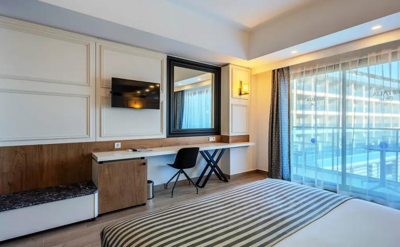 Eftalia Blue je moderní hotel. Hosté si zde odpočinou v prostorných pokojích. Je oceňován především pro svou blízkost pláže a stravování formou All Inclusive. Dovolenkáři mohou zamířit do sousedního hotelu Eftalia Island, kde je pro ně připraven animační program zahrnující sportovní aktivity, diskotéku nebo představení. Objekt je ideální pro rodinnou dovolenou - ti nejmenší si mohou užít aquapark až se 7 skluzavkami, zatímco dospělí mohou relaxovat ve wellness centru nebo si zacvičit v posilovně. |