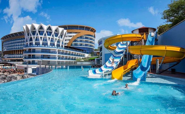 Tento luxusní pětihvězdičkový hotel leží přímo u písčité pláže. Hotel se pyšní zajímavou architekturou a unikátním molem na pobřeží. Hosté mohou využít velké množství sportovních aktivit, animačních a večerních programů. Hotel rovněž pořádá živá hudební vystoupení. Milovníci relaxu mohou využít turecké lázně nebo některou z dalších služeb spa centra. V hotelu se nachází několik obchůdků. Doporučujeme všem věkovým kategoriím.