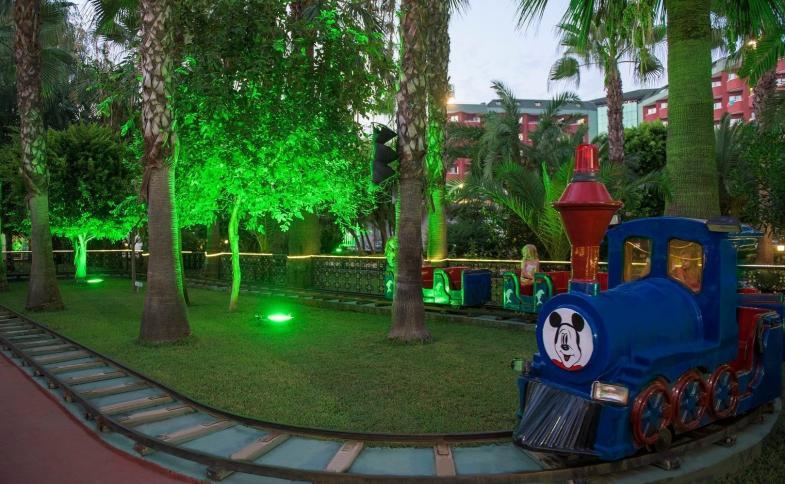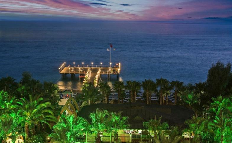 Hotel se nachází přímo na pláži přibližně 90 km od letiště v Antalyi, je obklopen udržovanou zahradou. Centrum Alanye je od hotelu vzdálené cca 30 km a Side přibližně 32 km. Děti se mohou těšit na obrovský lunapark s horskými dráhami a ruským kolem a také na bazény se skluzavkami. Dospělí si mohou užívat bazénový komplex nebo procedury v lázeňském & wellness centru.