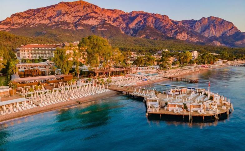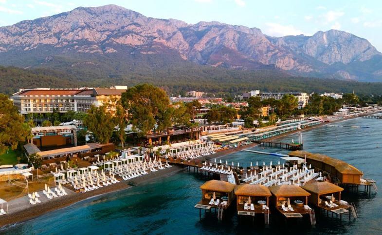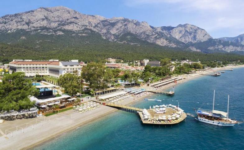 | Pyšní se polohou u dlouhé a široké písečné pláže, z níž 150 m je soukromá hotelová pláž s plážovým servisem a molem k pořádání hotelových akcí. Vstup do moře je zde pozvolný. Centrum populárního střediska Kemer je vzdáleno pouhých 500 m, centrum města Antalya 40 km a mezinárodní letiště 57 km (doba transferu cca 60 min). |