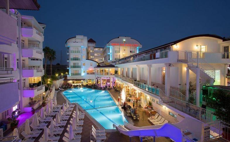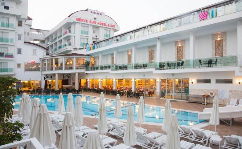 | Merve Sun Hotel se nachází na ulici S. Demirel Boulevard v čtvrti Yalı v městě Side v oblasti Antalya v Turecku. Tento hotel je krásně umístěn nedaleko od moře a nabízí příjemné ubytování pro hosty, kteří hledají relaxaci a dovolenou u pláže. Hotel má moderní vybavení a pohodlné pokoje s výhledem na moře nebo bazén. V hotelu je k dispozici také venkovní bazén, restaurace, bar a další vybavení, které hosté mohou využívat. Merve Sun Hotel je ideální volbou pro dovolenou v blízkosti moře a nabízí příjemné prostředí pro odpočinek a relaxaci. |