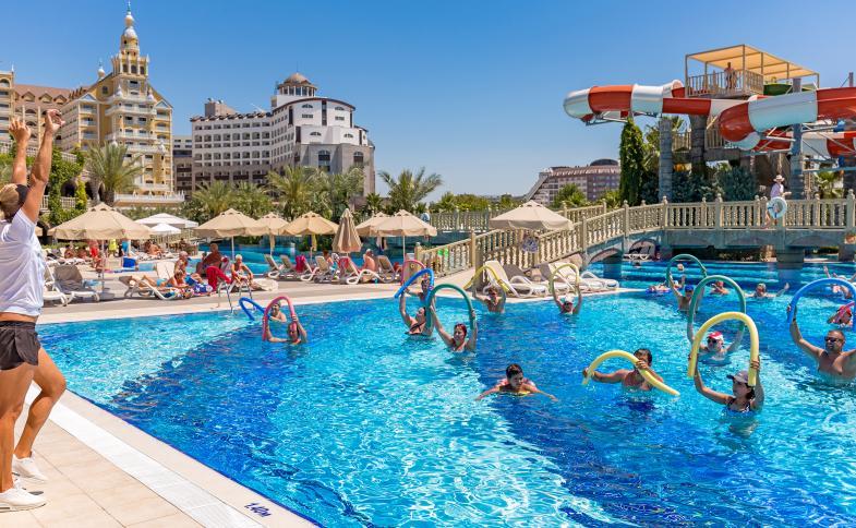 - Několik bazénů, vnitřní bazén, bazén pro děti, malý lunapark a aquapark