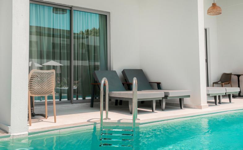 - Stejně vybavená jako Suite, ale má vstup do sdíleného bazénu