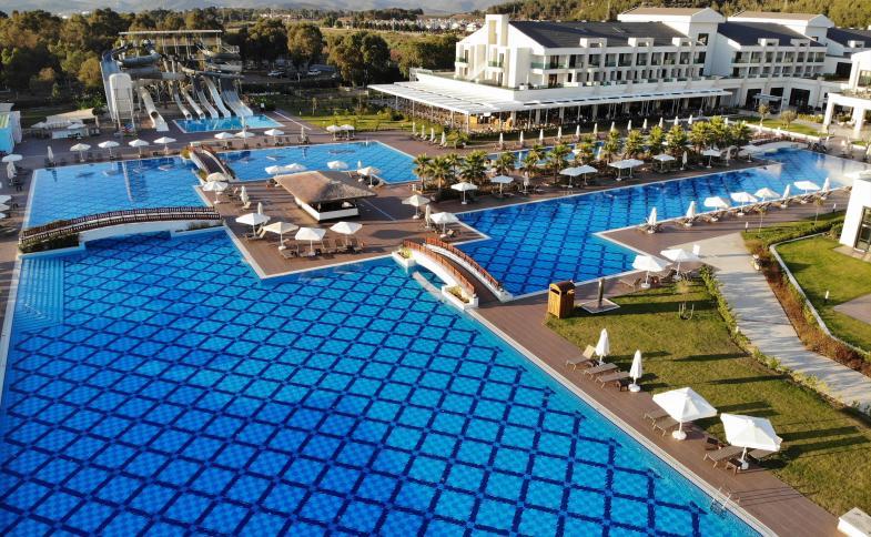 Nádherný hotel ze sítě Korumar nabízí klientům služby jen na té nejvyšší úrovni. Rozkládá se na ploše 109.000 m2, z toho asi polovinu tvoří zeleň. Nádherná široká a 230 m dlouhá písčitá pláž přímo svádí k různým radovánkám, ať už relaxaci s opalováním, nebo plavání či potápění v průzračném moři. Hotel dále nabízí kromě komfortně vybavených pokojů také bazény s aquaparkem pro děti i dospělé, pyšní se dokonce jedním z největších bazénu na Egejské riviéře. Bohaté animační a sportovní programy jistě ocení rodiny s dětmi, ale na své si zde přijdou klienti všech věkových kategorií.