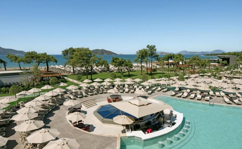 | Luxusní hotelová komplex se poprvé otevírá svým hostům v létě 2025. Rozléhá se na celkové ploše 45 000 m2 a ve své přední části se dotýká dlouhé a široké písečné pláže s pozvolným vstupem do moře, což ocení zejména slabší plavci nebo rodiny s dětmi (v přilehlé části o délce 220 m je pláž soukromá). Blízké okolí skýtá nákupní možnosti i řadu zajímavých míst turisticky oblíbené lokality Fethiye. Samotné centrum městečka je vzdáleno pouhých 15 km a vy jej můžete snadno navštívit díky místní dopravě nebo hotelovému transferu. Letiště Dalaman je vzdáleno 40 km (rovněž tak centrum stejnojmenného městečka). |