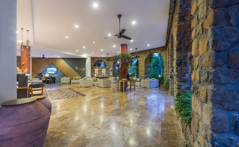 281 pokojů umístěných v budovách v zahradě, vstupní hala s recepcí , hlavní restaurace, 4 á la carte restaurace (turecká, latinská, rybí, mezinárodní), snack bary, bary, prádelna, obchody, kadeřník, SPA centrum, 2 bazény, terasa na slunění, lehátka, slunečníky a osušky zdarma.Pokoje