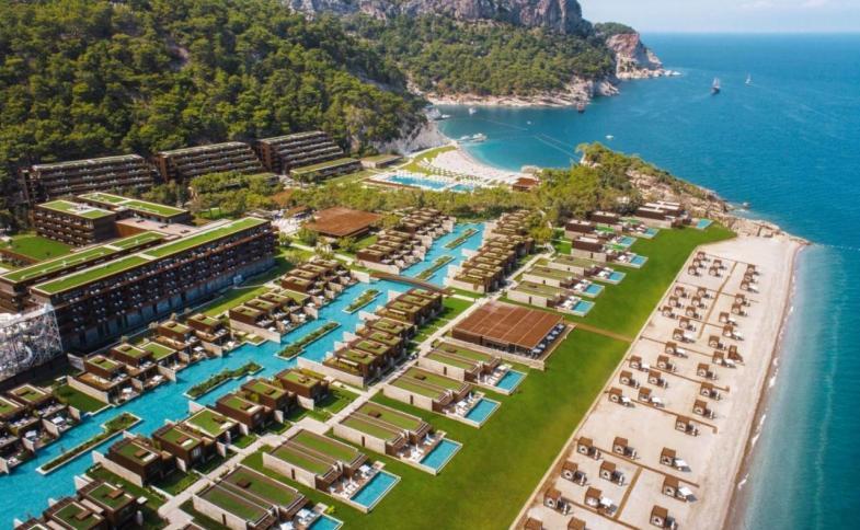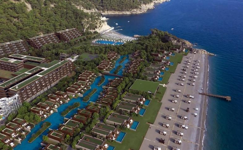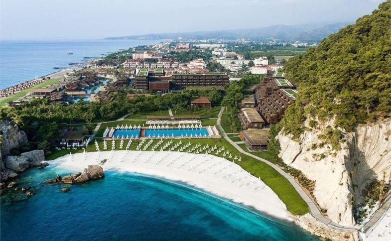 | v červnu 2014 otevřený 5* hotel rozkládající se na pozemku o rozloze 160 000 m2 se sestává z hlavní budovy, v zahradě umístěných residenčních bloků a samostatných vil. Po Beleku je to druhý hotel stejnojmeného řetězce a to už samo o sobě vypovídá o jedinečnosti resortu a především o jeho službách. Na rozdíl od prvního hotelu, který byl budován v již stojícím skeletu, se zde jedná o novostavbu vystavěnou v té nejvyšší kvalitě v duchu moderní architektury. Je zde použita kombinace ušlechtilých materiálů jako je kámen, sklo, mramor i dřevo, dolpněných avangardním nábytkem i rozlehlými vodními plochami v zahradě. Hotel působí velkolepě, řadí se jistě mezi menší rezorty co do počtu pokojů, ale všechny předčí kvalitou použitých materiálů, poskytovaných služeb a svou pověstnou pohostiností. K hotelu patří dva soukromé zálivy s 200 a 400m dlouhou pláží. Letiště je vzdáleno 60 km, letovisko Kemer 6 km a nejbližší vesnička Kiris pouhých 400 m. |