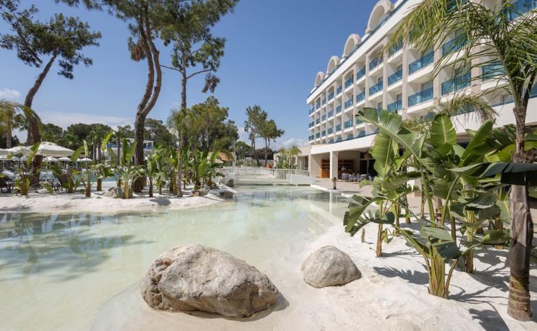 Hotel má vlastní písečnou pláž, která se nachází 400 m od hotelu, přístup k ní vede přes silnici. Vstup do moře je písčito-oblázkový. Na pláž jezdí každých 15 minut kyvadlová doprava (zdarma). Lehátka, slunečníky a plážové osušky jsou k dispozici zdarma. Na pláži se nachází menší restaurace a bar. |