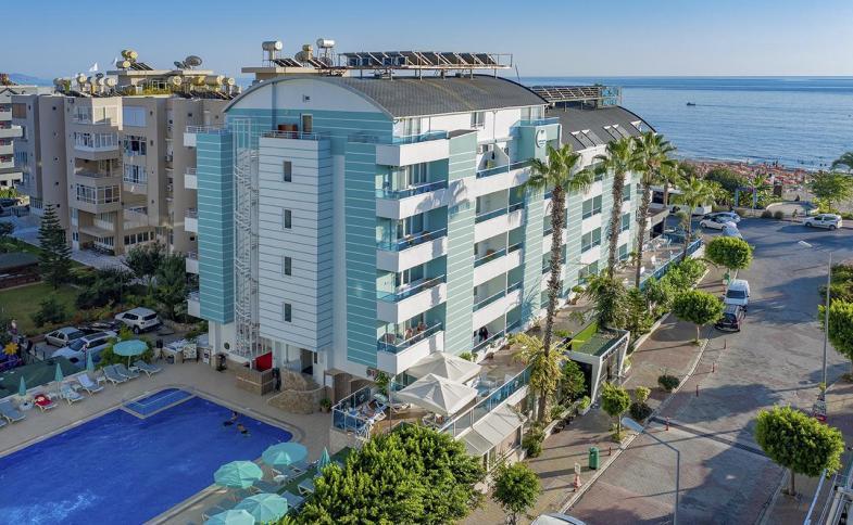 | Hotel s dostačující vybaveností a výtečným umístěním cca 60 m od pláže, a navíc u pobřežní promenády ideální k procházkám. Výhodou je stravování přímo v hotelovém areálu, stejně tak vlastní Spa centrum skýtající příjemný relax a možnost revitalizace. Další plus je variabilita typů ubytování a to i u rodin s 2-3 dětmi. Milovníky poznávání zajisté potěší blízkost centra Alanye, které nabízí řadu historických památek, uliček plných malých krámků se suvenýry a nákupních možností všeho druhu. Hotel je vhodný jak pro samostatně cestující páry, tak pro rodiny s dětmi. |