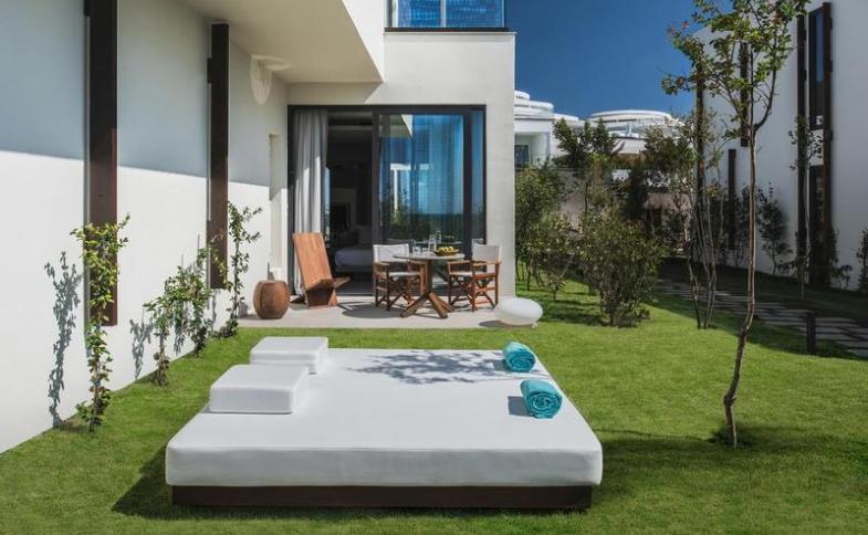 V pokojích je klimatizace, ventilátor, obývací část, kuchyň a koupelna. K základnímu vybavení většiny pokojů patří balkón. Mnoho pokojů má výhled na moře, který vytváří příjemnou atmosféru. Pokoje mají manželskou postel typu king size a rozkládací pohovku. K dispozici jsou i postýlky pro kojence nebo přistýlky. Také je zde sejf a minibar. Hosté, kteří se chtějí stravovat sami, zde najdou kuchyňský kout s ledničkou, mikrovlnnou troubou, varnou konvicí/kávovarem a myčkou nádobí. Hosté mají k dispozici žehlič kalhot. K základnímu vybavení patří připojení k internetu, telefon, televize a WiFi (zdarma). Pro hosty je na pokoji připravena domácí obuv. V koupelnách je sprchový kout a vana. K dispozici mají hosté také vysoušeč vlasů a župan. V prázdninovém areálu jsou pokoje pro rodiny a nekuřácké pokoje.