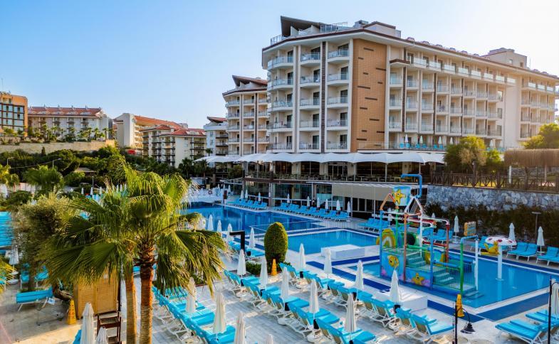 Vstupní hala s recepcí, hlavní restaurace s vnitřní i venkovní sekcí, restaurace a la carte, 4 bary, plážový bar, aquapark, bazén (lehátka a slunečníky zdarma), dětský bazén (lehátka a slunečníky zdarma), relaxační bazén s vířivkou (lehátka a slunečníky zdarma), vnitřní bazén (lehátka zdarma), dětské hřiště, obchody, konferenční místnost s kompletním vybavením.Pokoje
