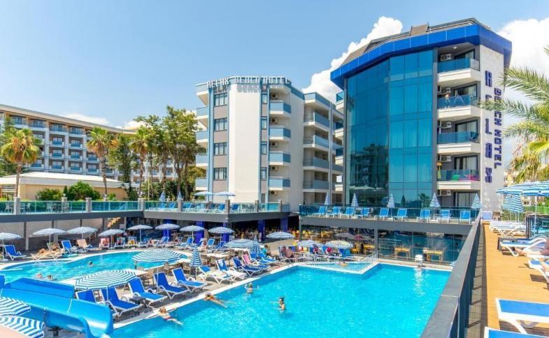 Hotel se nachází v Tosmuru, 4 km od centra Alanye. Letiště Antalya je vzdáleno 130 km, letiště Gazipasa 30 km. |