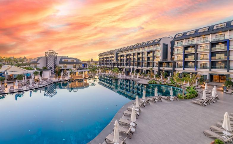 Celkem 486 pokojů na 5 patrech a rozloze 18,000 m2, celkem 11 výtahů, vstupní hala s recepcí, hlavní restaurace, 4 A la Carte restaurace (Turecká, Mexická, Italská, rybí - 1x za pobyt 1 z nich zdarma, nutná rezervace, min 7 nocí pobytu), 2 snack bary (Brio Bistro, Aria plážový club), 4 bary (Iconic Lobby bar, Aria plážový klub, Oasis bar u bazénu, Opia Disco bar), patisserie, disco bar, vitamínový bar, hlavní bazén, dětský bazén, swim up bazén pouze pro Swim up pokoje, bazén s tobogány pro dospělé, bazén se skluzavkami pro děti, vnitřní bazén pro dospělé a vnitřní bazén pro děti, lehátka, slunečníky a osušky u bazénu zdarma, knihovna (zdarma), herna (za poplatek), služby prádelny (za poplatek), pokojová služba (za poplatek), služby lékaře nebo zdravotní sestry (za poplatek), nákupní možnosti.Pokoje
