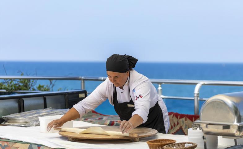 Písečná pláž s oblázkami, lehátka, slunečníky a plážové osušky zdarma. Hosté mají k dispozici plážový bar a bezplatný hotelový shuttle bus.Stravování