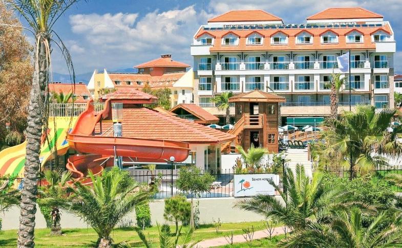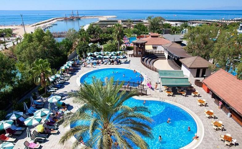 270 pokojů, 5 budov, vstupní hala s recepcí, hlavní restaurace, 2 restaurace à la carte za poplatek (turecká, rybí), několik barů, menší obchůdky, kadeřnictví, bazén a 2 skluzavky. Lehátka, slunečníky, osušky a matrace u bazénu zdarma, výměna osušek za poplatek.