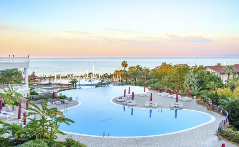 Turecká riviéra - Side - Kizilagac. Rozsáhlý rezort položený u velmi široké a dlouhé písečné pláže v sobě snoubí všechny předpoklady pro odpočinkovou; rodinnou i aktivní dovolenou a zároveň je také vhodným místem pro pořádání konferencí a firemních setkání. Skládá se z hlavní budovy a klubové části a patří k němu také vedlejší část Sunrise; společně s níž nabízí skutečně bohatou škálu služeb a sportovních aktivit. Klienti obou hotelů mohou využívat služeb celého komplexu. Na děti zde čeká dobrodružství v podobě několika bazénů i aquaparku a kvalitně vybaveného miniklubu; dospělí ocení 8 restaurací s obsluhou; noční klub; několik barů a velké SPA centrum. Rozhodně doporučujeme také sportovním nadšencům.