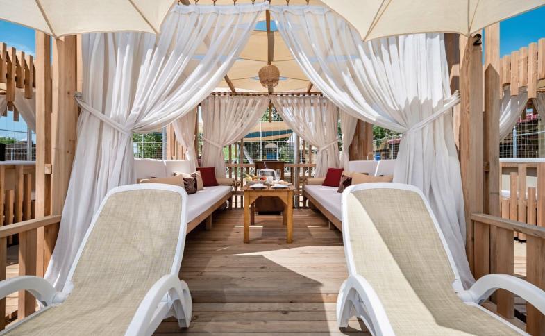 - písečná pláž: lehce se svažující, hotelový, pláž pouze přes promenádu, slunečníky, lehátka, Kabina (za poplatek)