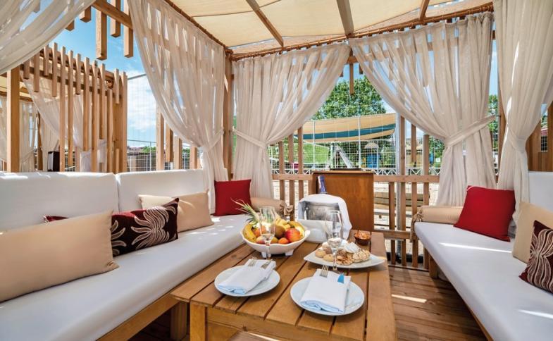 - 36-40 m2, suita, se spojovacími dveřmi, výhled na moře, oddělená ložnice, kombinovaný obývací pokoj/ložnice, manželská postel, pohovka, sprcha, WC, župan, vysoušeč vlasů, laminátová podlaha, klimatizace, centrálně řízená, minibar, náplň pravidelně, bezpečnostní schránka, 2 TVs (SAT), DVD přehrávač, Wi-Fi, varná konvice, káva/čaj, balkon
