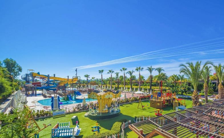 Hlavní budova a 4 bloky vilek v zahradě (naproti hlavní budově, oddělené komunikací); lobby bar, hlavní restaurace, 3 restaurace à la carte (možno využít jednu z restaurací 1× za pobyt zdarma), několik barů, obchůdků, kadeřník, lékař, konferenční místnost, fitness, vnitřní bazén. Venku velký bazén, 2 bazény se skluzavkami, dětský bazén a bazén u vilek, lehátka a slunečníky zdarma, osušky oproti kauci.