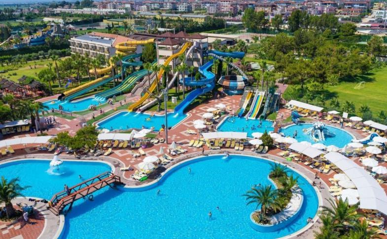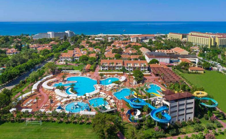 | prostorný areál se skládá z hlavní budovy, dále 62 dvou menších klubových budov a vilové části konceptu VIP Select Villas. Po příjezdu Vás uvítá velká, luxusně provedená vstupní hala s recepcí, lobby s barem a výtahy. Ve vnitřních prostorách Vám bude k dispozici několik salónků, business centrum, zasedací místnosti (celkem 3 různých velikostí a kapacity), společenské TV místnosti, herna, dětský koutek, knihovna, směnárna, obchůdky se suvenýry, zlatnictví, obchod s koženými výrobky aj. K Vaší relaxaci je zde hotelové wellness centrum s vnitřním bazénem a dětským bazénem,saunou, parní lázní, nabídkou masáží a kosmetických procedur všeho druhu. Samozřejmostí je profesionálně vybavené fitness centrum. Stravování hostí obstarávají hlavní bufetová restaurace Sofra s vnitřní i venkovní částí a další 3 a´la carte restaurace různého zaměření (asijská, mexická, tradiční turecká aj.). K posezení u dobrého nápoje Vám bude k dispozici celkem 7 barů (vnitřní, venkovní, plážový, pool, snack), dále patisserie a kavárna. Venkovní prostory nabízí hlavní bazén (868 m2), relaxační bazén s oddělenou dětskou částí (530 m2) a velký aquapark (celkem 950 m2, skluzavky a tobogán) s oddělenou dětskou částí (skluzavky). V areálu jsou sluneční terasy s lehátky a slunečníky (zdarma, i na hotelové pláži). Chloubou hotelu je vlastní luna park kolotoči, průlezkami, vláčky a řadou dalších atrakcí. Další zajímavostí je malá vlastní ZOO. K aktivnějšímu odpočinku lze využít 5 tenisových kurtů, fotbalové hřiště (90 x 60m), minigolf, basketbal, volejbal, kulečník, šipky aj. Lze rovněž využít denní nabídky animačních programů různého typu-společenské i sportovní-disco,vystoupení animátorů, hudební večery, dále kurzy jógy, aerobic, vodní polo, dětský klub a řady dalších. Na pláži možnost vodních sportů, u recepce lze sjednat pronájem vozidla nebo jízdních kol. |