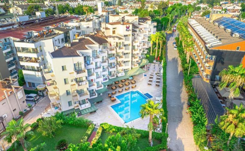 Prázdninové apartmány byly postaveny v roce 1996. Hotel hostům nabízí celkem 93 pokojů. Po příjezdu jsou hosté uvítáni ve vstupní hale s recepcí. Do jednotlivých pater lze vyjet výtahem. V objektu je úschovna zavazadel, hotelový sejf a směnárna. Ve společných prostorách je možnost internetového připojení přes WiFi. Objekt nabízí celou řadu zařízení pro handicapované. Nachází se zde několik stravovacích zařízení, například restaurace, jídelna, bar a plážový bar. Je tady supermarket a další obchody. V areálu je hezká zahrada a hřiště. Je zde TV místnost. Hosté mohou zaparkovat v garáži (zdarma) nebo na parkovišti (zdarma). Dále je možné využít vícejazyčný personál, 24 hodinovou bezpečnostní službu, službu hlídání dětí, autopůjčovnu, lékařskou službu, transfer-servis, pokojovou službu, budící službu, prádelnu a kadeřnictví. Hosté mohou využít shuttleservis. Aktivní hosté, kteří se chtějí projet po okolí na kole, si mohou půjčit kolo. Při řešení obchodních záležitostí mohou hosté využívat služeb business centra, které nabízí fax.