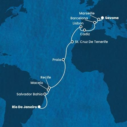 Brazílie, Kapverdy, Španělsko, Portugalsko, Francie, Itálie z Rio de Janeira na lodi Costa Pacifica